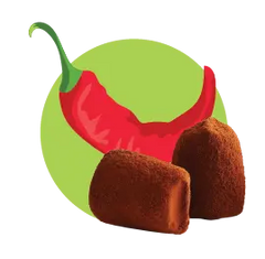 Red Ghost Chili Peppers – for a spicy halloween. Our Red Ghost Chili peppers chocolate truffle is made with chili flakes inside to give it a spicy aftertaste. A favourite in the winter season!