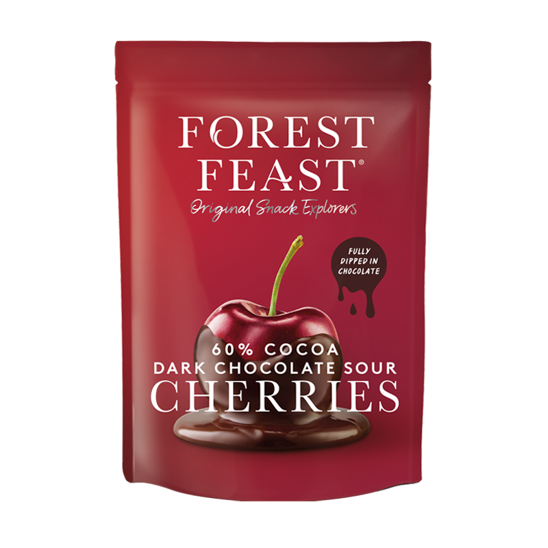 Dark Chocolate (70%) (cocoa mass, sugar, coca butter, emulsifier (soya lecithin), natural vanilla flavouring), Cherries (28%) (sour cherries, sugar, sunflower oil), Glazing Agent (gum arabic), Glucose syrup, Vegetable Oil (RSPO approved palm oil), Citric Acid. Dark Chocolate contains 60% cocoa solids minimum.